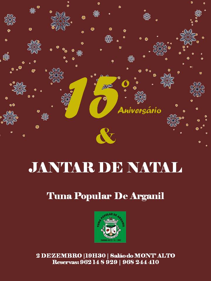 No próximo dia 2 de Dezembro, vai realizar-se no salão do Mont’Alto, o jantar de Natal e comemorativo do 15.º aniversário da Tuna Popular de Arganil.