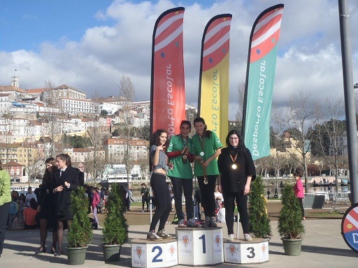 Podio_Jun Fem_1ºDecorreu em 26 de Janeiro, o Agrupamento de Escolas de Arganil participou, e destacou-se, na prova de Corta Mato Distrital, realizada na Praça da Canção, em Coimbra.