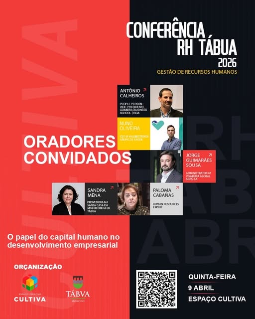 O Município de Tábua promove hoje, 9 de Abril, entre as 18H30 e as 20H00. no Auditório do Espaço CULTIVA, a Conferência RH Tábua 2026, subordinada ao tema “Pessoas, Dados e Futuro”.