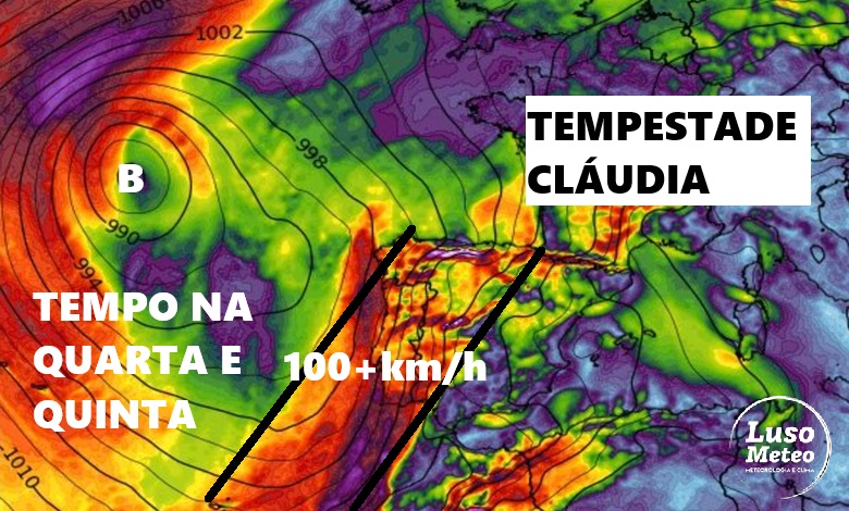 De acordo com a informação do Instituto Português do Mar e da Atmosfera (IPMA), prevê-se para os próximos dias, um agravamento do estado do tempo em Portugal continental devido à depressão CLÁUDIA com precipitação persistente, por vezes forte, vento e agitação marítima,