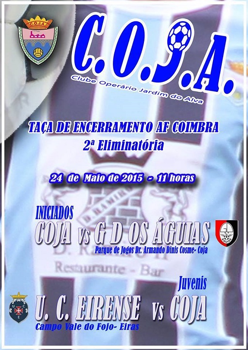 A equipa de Iniciados do Clube Operário Jardim do Alva (C.O.J.A.) disputa este domingo, dia 24, às 11 horas, no Parque de Jogos Dr. Armando Dinis Cosme, em Coja, a 2.ª eliminatória da Taça de Encerramento da Associação de Futebol de Coimbra, frente à sua congénere do Grupo Desportivo “Os Águias”.