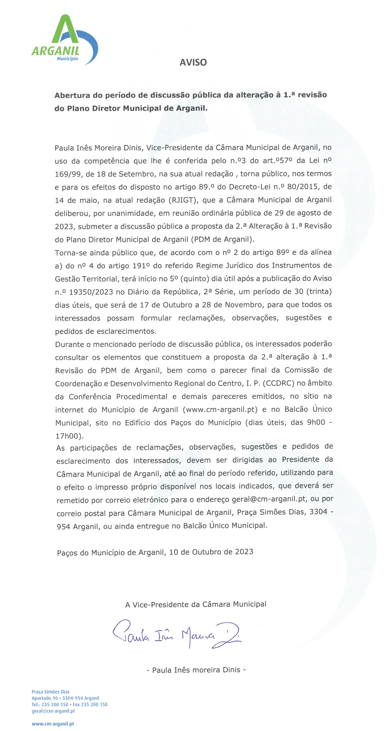 EDITAL: Plano Diretor Municipal de Arganil