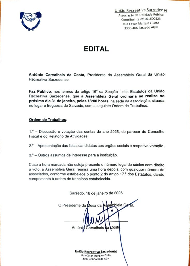 EDITAL: União Recreativa Sarzedense