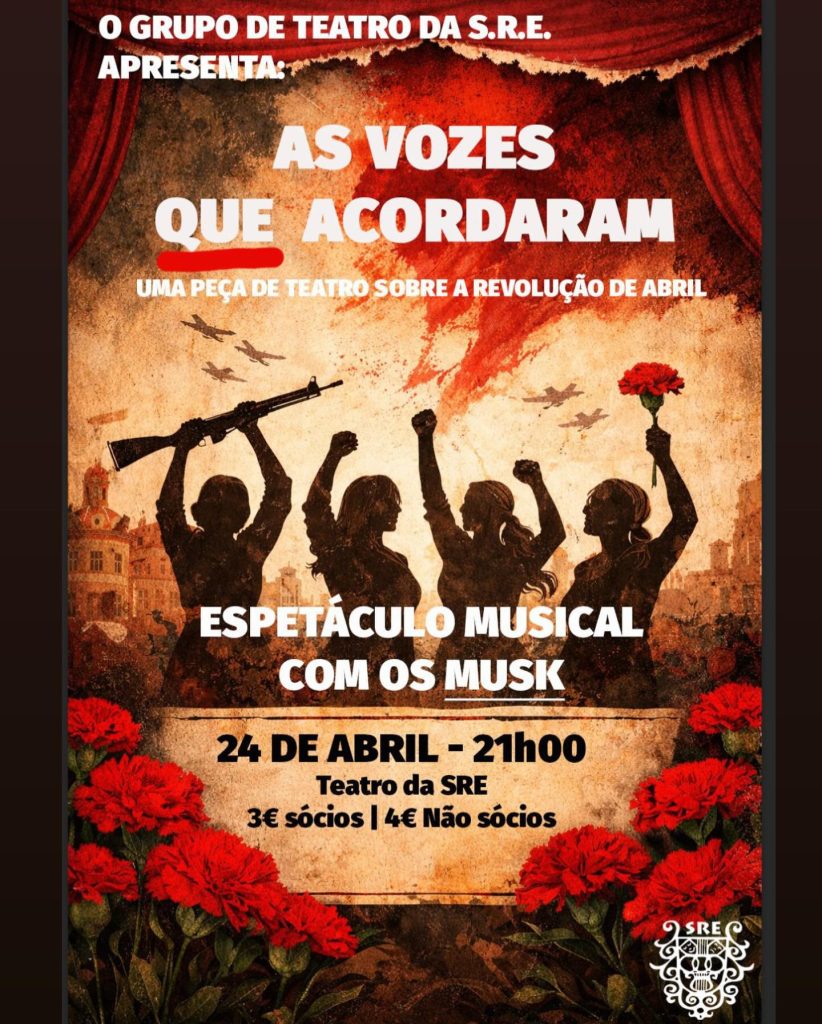 A Sociedade Recreativa Ervedalense assinala o 25 de Abril com estreia da peça de teatro original “As Vozes que Acordaram” e espectáculo musical, numa noite cultural especial, amanhã, 24 de Abril, pelas 21 horas.