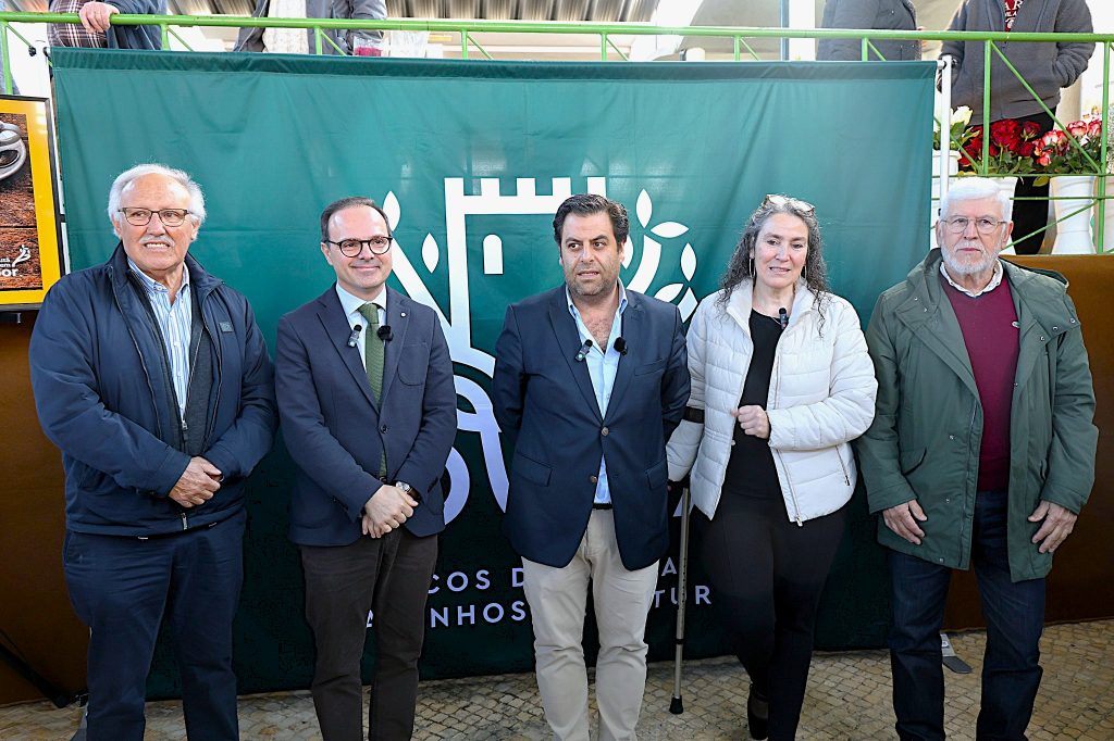 Na foto, da esquerda para a direita: José Redondo, do Licor Beirão; Ricardo Cruz, vice-presidente da CIM da Região de Coimbra; Victor Carvalho, presidente da Câmara Municipal; Ana Souto, coordenadora da DUECEIRA; e António Carvalho, da Cooperativa LOUSÃMEL, na apresentação do programa