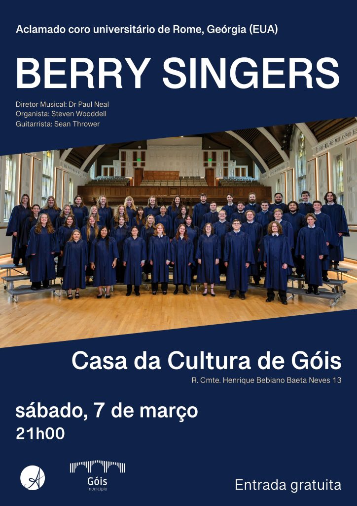 No próximo dia 7 de Março, pelas 21 horas, na Casa da Cultura de Góis, vai realizar-se um concerto com o Coro Universitário BERRY SINGERS, de Rome (Geórgia – Estados Unidos da América).