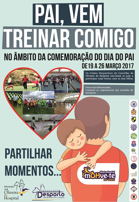 …é o nome da iniciativa Município de Oliveira do Hospital, que assinala o Dia do Pai, com treinos entre pais e atletas dos clubes desportivos do concelho. Foram desafiados os clubes desportivos do concelho a convidarem os pais dos seus atletas para participarem num treino com os filhos. A iniciativa, promovida pelo Pelouro do Desporto, decorre de 19 a 26 de Março e pretende sensibilizar os pais para a importância do seu envolvimento na actividade desportiva dos jovens enquanto factor determinante para a qualidade da participação do jovem atleta das escolas de formação.