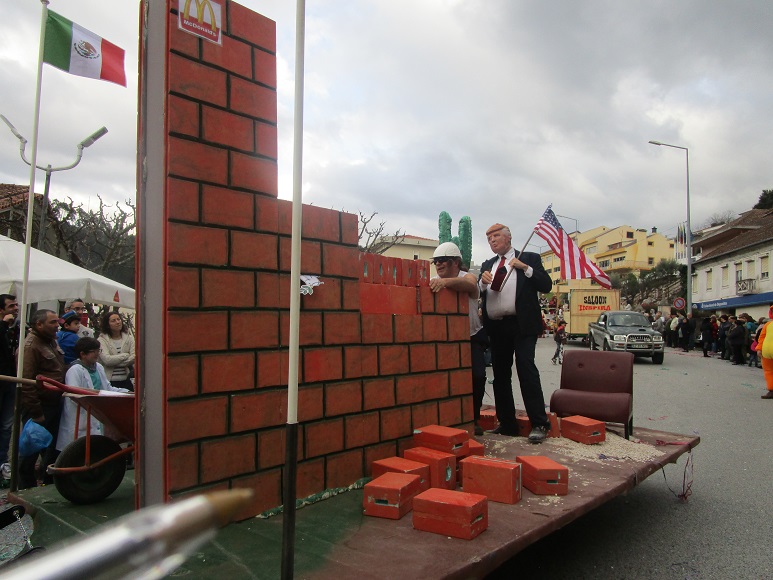 Os carros alegóricos apresentados, alguns deles muito curiosos, com muita imaginação, um deles sobressaiu: o que transportava a figura andante do Sr. Trump, que numa imaginação perfeita, continuava na teimosia em construir o muro a dividir os Estados Unidos da América com o México; mas encontrou em Pampilhosa da Serra alguns entraves, não falando nos jovens, meninas novas e menos novas, vestidos a rigor de mexicanos. O muro, lá indo sendo destruído…
