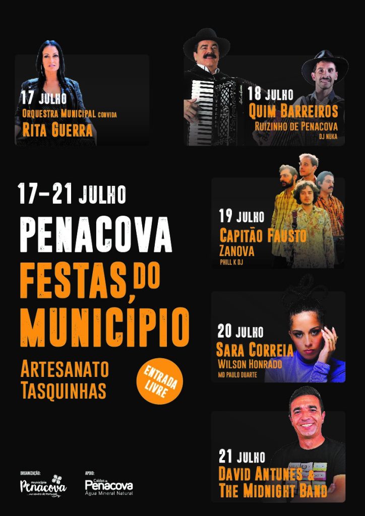 Rita Guerra atuará no dia 17 de julho acompanhada pela Orquestra Municipal de Penacova, composta por músicos das três filarmónicas do concelho. No dia 18 será a vez de Quim Barreiros e Ruizinho de Penacova. No dia 19 subirá ao palco Capitão Fausto. No dia seguinte será a vez de Sara Correia e o quinto e último dia contará com a presença de David Antunes & The Midnight Band.