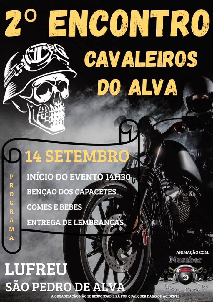 No próximo dia 14 de Setembro (domingo), a localidade de Lufreu, em São Pedro de Alva, recebe o 2.º Encontro Cavaleiros do Alva, um convívio “motard” que promete juntar paixão pelas duas rodas, tradição e momentos de confraternização.
