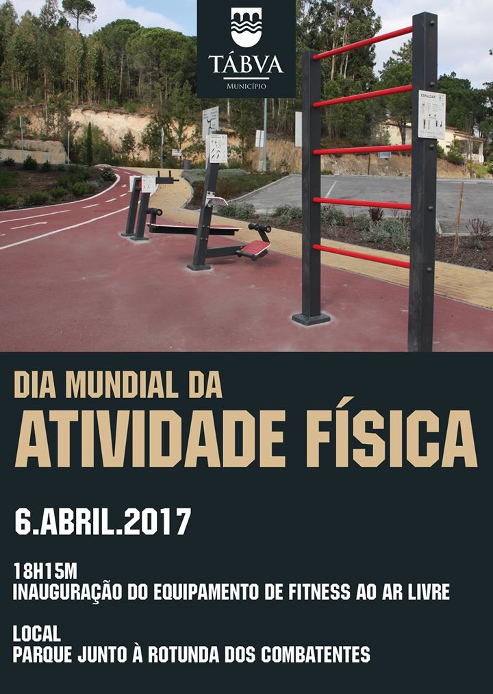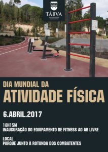 No âmbito do Dia Mundial da Actividade Física, o Município irá proceder, pelas 18h15m, de amanhã, dia 6, à inauguração do Equipamento de Fitness ao ar-livre,situado no Parque junto à Rotunda dos Combatentes, na vila de Tábua.