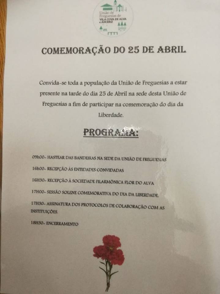 U.F. DE VILA COVA DE ALVA E ANSERIZ (Arganil): Assinatura de protocolos assinala 25 de Abril