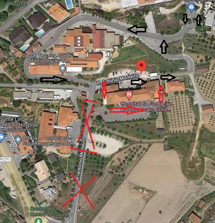 Ao contrário do anterior corte, não fica aberto o acesso nessa via para os estacionamentos no lado sul do hospital, pelo que para estacionar terão de entrar pela frente do hospital (entrada coberta) e sair pelo acesso entre o hospital e o edifício da fisioterapia.
