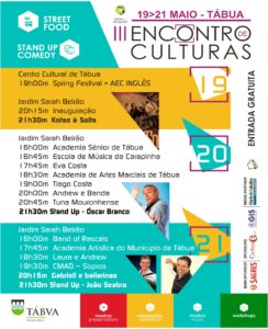 Começa já esta sexta-feira, dia 19, o III Encontro de Culturas do Município de Tábua, que decorre no Centro Cultural de Tábua e no Jardim Sarah Beirão, com um programa diversificado e multicultural, cujo objectivo passa por promover a interacção entre a comunidade local e a comunidade estrangeira que reside no concelho.